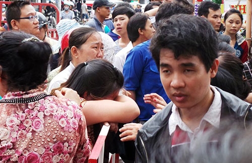 Người thân khóc ngất tại hiện trường. Ảnh: Trường Nguyên. |
