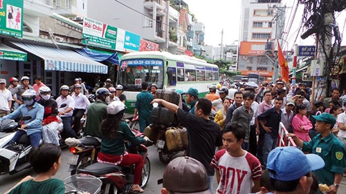 Hàng trăm người hiếu kỳ tập trung theo dõi vụ việc khiến giao thông ùn tắc, hỗn loạn. Ảnh: Trường Nguyên. |