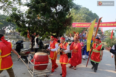 Sau nghi lễ dâng hương trong đình là màn đánh trống khai hội đi rước "ông ỉn". |