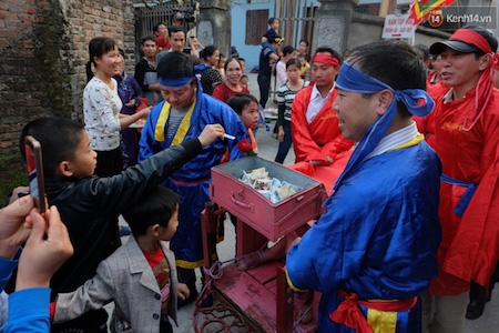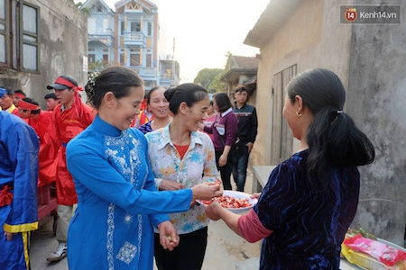 Mỗi khi "ông ỉn" đi qua nhiều gia đình mang bánh kẹo ra mời đoàn rước. |