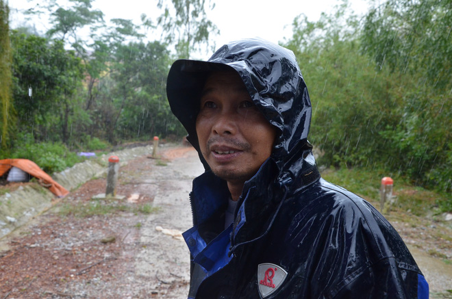 Trên con đường bê tông dẫn vào xã Cam Thủy toàn bùn đất, ông Đặng Văn Nam mặc chiếc áo mưa mỏng bị rách loang lổ đang đổ cám bột cho đàn lợn ăn.