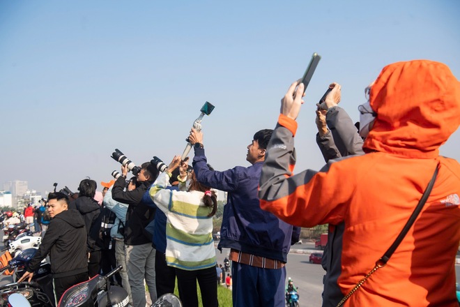 Anh Vũ Tiến Độ (49 tuổi, Long Biên) chia sẻ, anh và con trai đã có mặt tại đây từ 8 giờ sáng. Tuy nhiên, khi anh đến đã thấy rất nhiều người đứng chờ để chứng kiến màn biểu diễn của các đội bay.