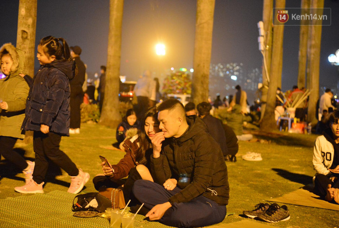 Thời tiết càng về đêm càng se lạnh, nhưng không khí ở khu vực này lại rất náo nhiệt. Không chỉ có các bạn trẻ, mà nhiều gia đình cũng đưa theo con nhỏ đến đây chờ đón thời khắc năm mới.