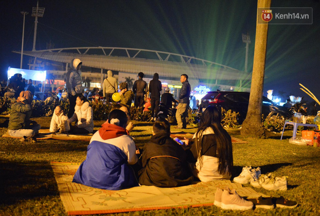 Ghi nhận của PV, khoảng 21h30 tại khu vực cột đồng hồ (SVĐ Mỹ Đình) hàng trăm người dân đã ngồi đây nhận chỗ.
