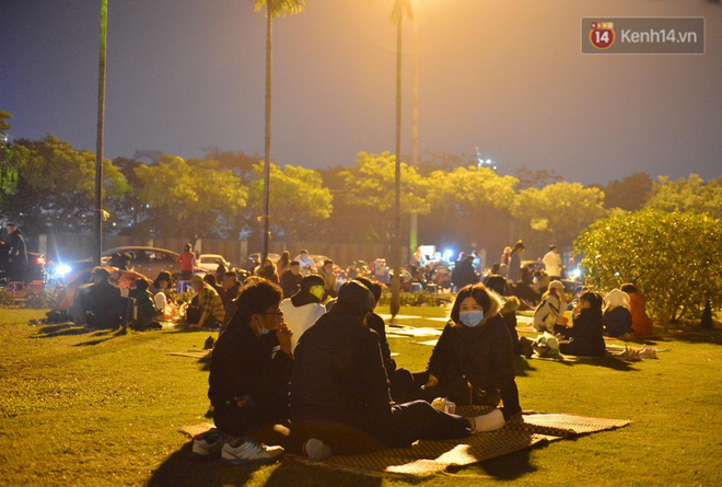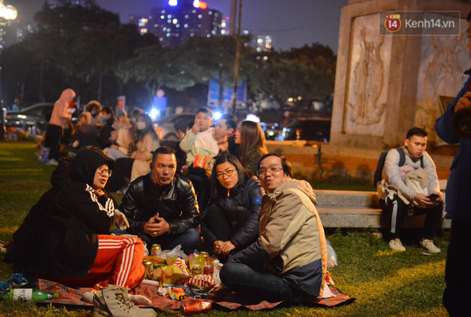 01/01/2021 05:38Người dân Hà Nội trải chiếu, ngồi la liệt trên bãi cỏ uống nước, cắn hướng dương 'canh' pháo hoa đón năm mới 2021