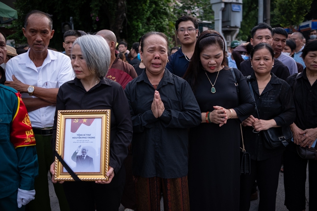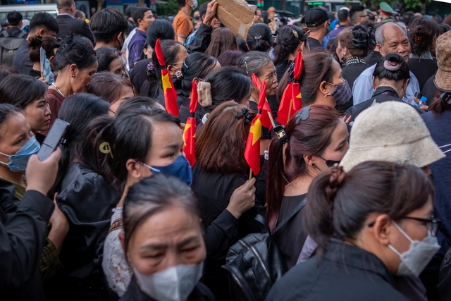 Tuy nhiên, ngay từ đầu giờ chiều, đã có rất đông người dân xếp hàng dài ở những con phố xung quanh khu vực Nhà tang lễ Quốc gia để có thể vào viếng Tổng Bí thư Nguyễn Phú Trọng, tiễn người đến những đoạn đường cuối cùng.