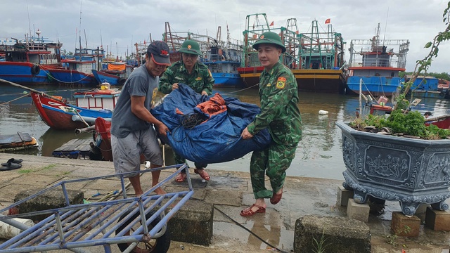 Bộ đội Biên phòng tỉnh Quảng Trị hỗ trợ người dân neo đậu, đưa ngư lưới cụ lên bờ