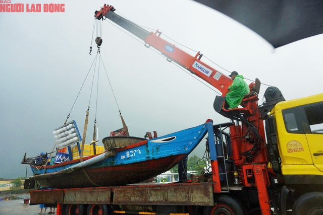 Trong khi đó, nhiều ngư dân chia sẻ tranh thủ cẩu thuyền lên bờ sớm để tiết kiệm chi phí.