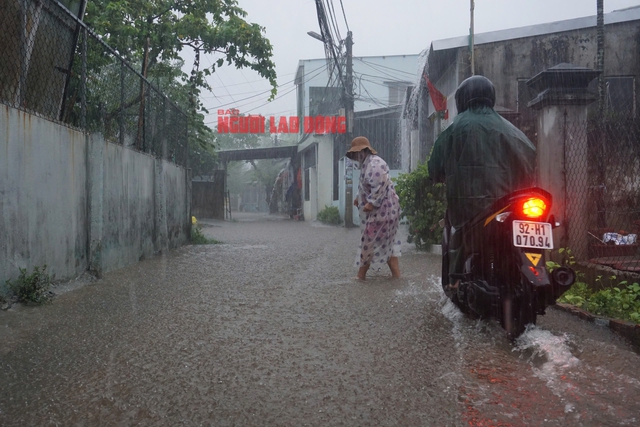 Do mưa lớn kéo dài, sáng 18-9, trên một số tuyến đường ở Đà Nẵng nước ngập sâu 30-50 cm khiến tình hình giao thông hỗn loạn.