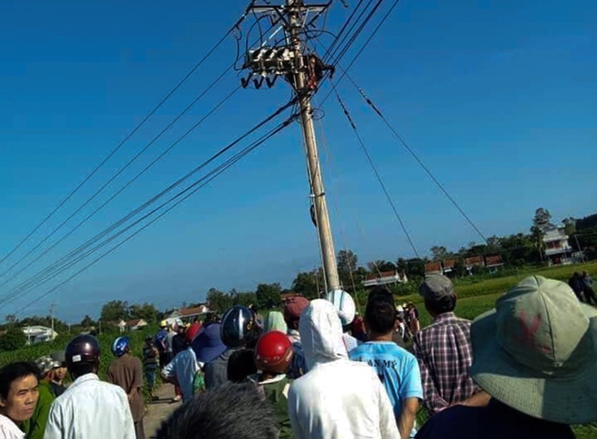 Khi lại gần, những người có mặt tại hiện trường đều tỏ ra hết sức bàng hoàng khi phát hiện một thi thể người đàn ông chết cháy đen, nghi là do điện giật, nằm lơ lửng trên trụ điện cách mặt đất hơn 10m.