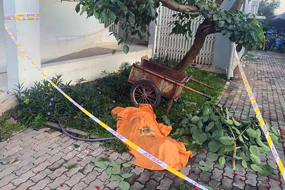 Cạnh thi thể là một nhánh cây lớn vừa bị gãy. Ngoài ra, người dân còn phát hiện một đôi dép để dưới lan can lầu 5 chung cư trên.