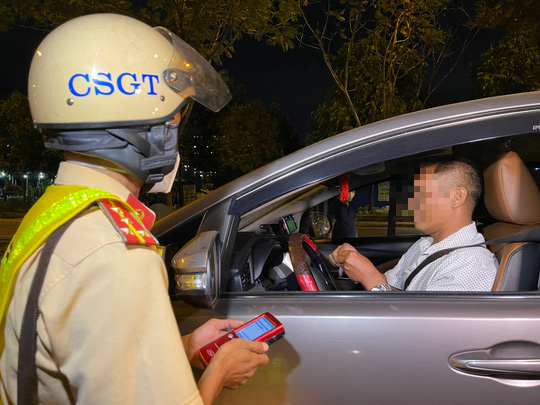Trong khoảng thời gian này, lực lượng chức năng tiếp tục phát hiện ông Đ. (ngụ phường Thạnh Mỹ Lợi, TP Thủ Đức) vi phạm nồng độ cồn mức 0.381mg/l khí thở. Với kết quả đo này, ông Đ. sẽ bị phạt 17 triệu đồng và bị tước giấy phép lái xe trong vòng 17 tháng. Sau khi ký biên bản vi phạm, ông Đ. đồng ý để CSGT đưa ôtô về trụ sở Đội CSGT Cát Lái, chấp hành bị tạm giữ phương tiện.