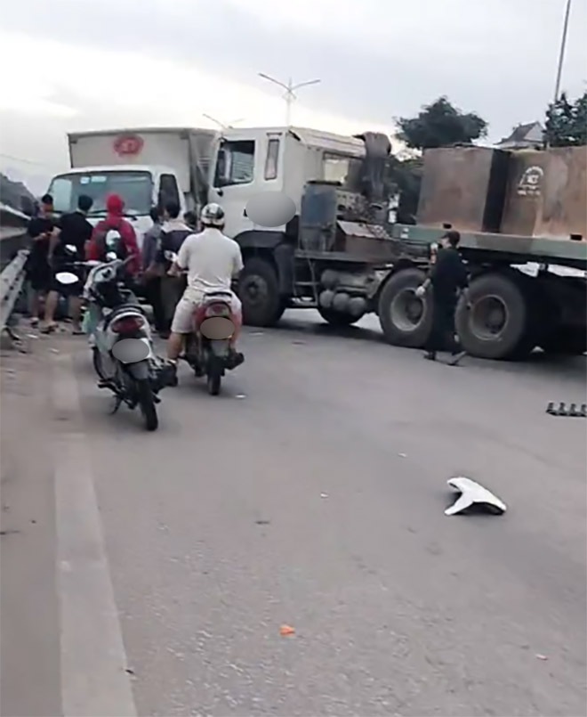 Mới đây, hình ảnh tại hiện trường của một vụ tai nạn liên hoàn xảy ra ở Hà Nội được chia sẻ trên mạng xã hội khiến nhiều người sợ hãi. Trong ảnh, một người đàn ông trung tuổi với gương mặt đau đớn cùng chiếc xe máy đang bị mắc kẹt giữa một bên là đầu xe tải và một bên là hộ lan. Ngoài ra, tại hiện trường còn có một chiếc xe đầu kéo chắn ngang đường.