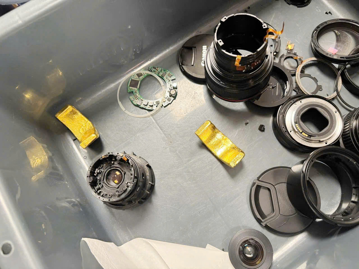 Kết quả, phát hiện bên trong các ống kính có chứa 12 miếng kim loại màu vàng, nghi là vàng nguyên chất, với tổng trọng lượng gần 2kg. Số vàng này được cắt ghép, giấu kỹ nhằm đánh lạc hướng thiết bị soi chiếu và lực lượng kiểm tra.