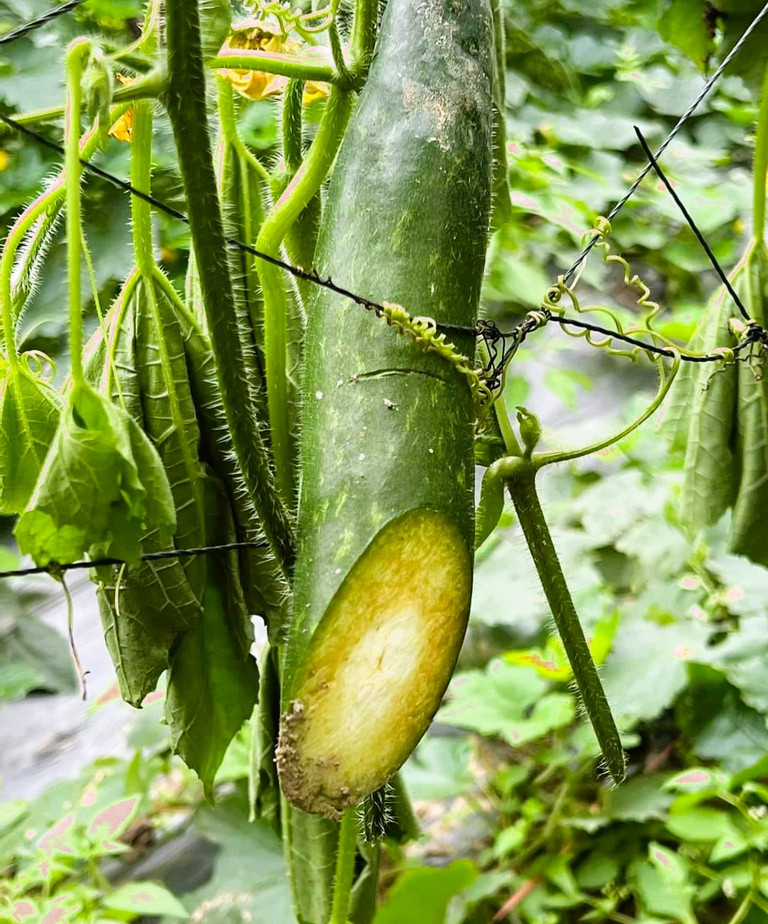 Chia sẻ với PV VietNamNet, ông Dương xót xa cho hay, vào sáng 20/12, khi ra ruộng kiểm tra thì mọi người tá hỏa phát hiện hàng nghìn gốc bí bị kẻ gian nhổ cây, chặt ngang gốc, thân và quả nên dần héo rũ.
