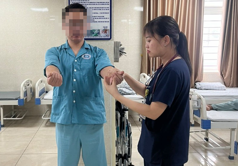 Sau 4 ngày điều trị, tình trạng sức khỏe của người bệnh phục hồi tốt; hết rung giật nhãn cầu, nhìn đôi, liệt nửa người phải được cải thiện. Bệnh nhân đã có thể đi lại với sự trợ giúp của người thân.