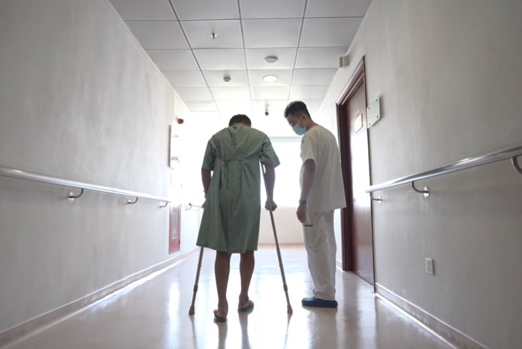 Ngay ngày đầu tiên sau mổ, ông T đã có thể ngồi dậy và bắt đầu tập đi lại. Đây là một bước tiến vượt bậc sau thời gian dài bệnh nhân phải ngồi xe lăn. Tình trạng suy thận do nhiễm độc kim loại cũng đã được kiểm soát, chức năng thận đang dần hồi phục. Đặc biệt, chỉ sau một tuần, ông T đã có thể đi lại mà không cần bất kỳ sự hỗ trợ nào.