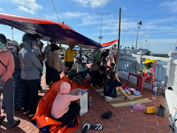 Sáng cùng ngày, chị T. (vợ anh C.) ngồi thẫn thờ trên cầu Cửa Đại nhìn lực lượng cứu hộ tìm thi thể của chồng và con gái.