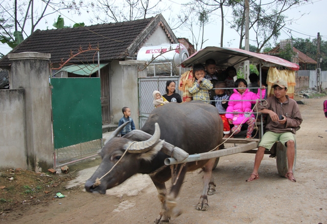 Hỏi về vấn đề an toàn giao thông, nhiều người dân nói, việc xe trâu tham gia giao thông, lại chở người dù không đúng luật giao thông, nhưng chiếc xe cũng chỉ đi trong đường làng, anh Ngọc lại làm khung sắt, chở các cháu rất cẩn thận, nên không đáng ngại.