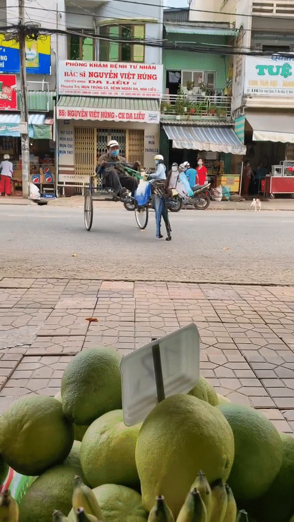 Theo đoạn clip đăng tải, chiếc xe được thiết kế như một chiếc xích lô, phía sau là chỗ ngồi, đằng trước là chỗ điều khiển nhưng điểm đặc biệt là tay lái hình con ngựa.