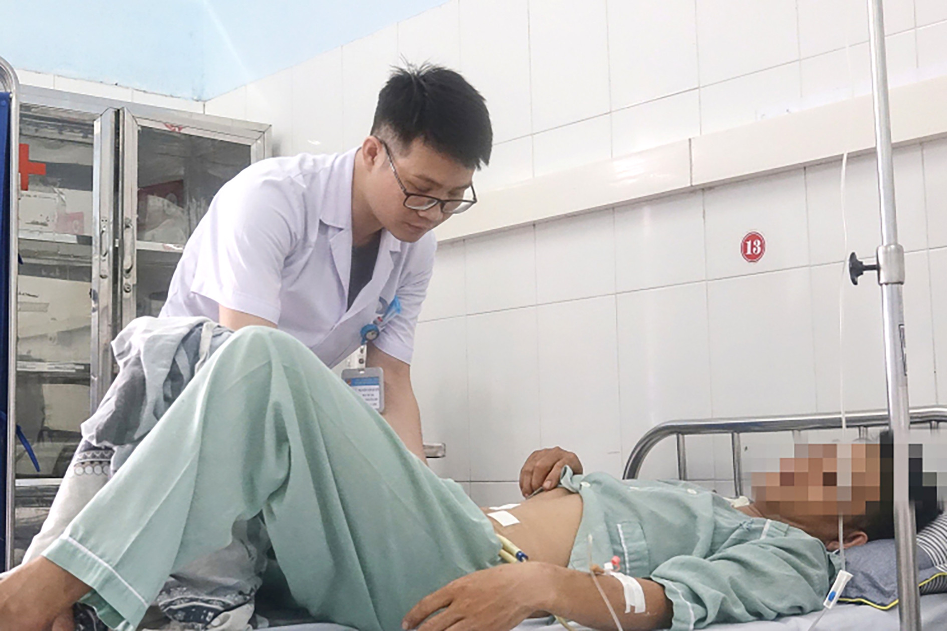 Cụ thể, bệnh nhân là L.V.T. (34 tuổi, trú tại huyện Mường Ảng, tỉnh Điện Biên). Sau khi uống bia, anh đi xe máy và tự ngã trong tình trạng bàng quang căng nước tiểu. Tai nạn khiến bệnh nhân đau bụng nhiều, đau đầu, đau ngực, đã vào Trung tâm Y tế TX Quảng Yên khâu vết thương phần mềm, tiêm uốn ván rồi chuyển đến Bệnh viện Bãi Cháy.