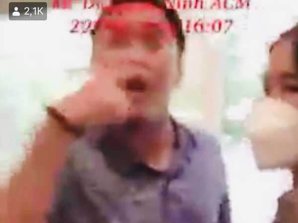Nguời đàn ông tiếp tục quát tháo rồi đưa ra chiếc thẻ, la lớn: "Tui là ban chỉ đạo nha... Giỡn mặt với tui hả. Tui cho công an xuống...".