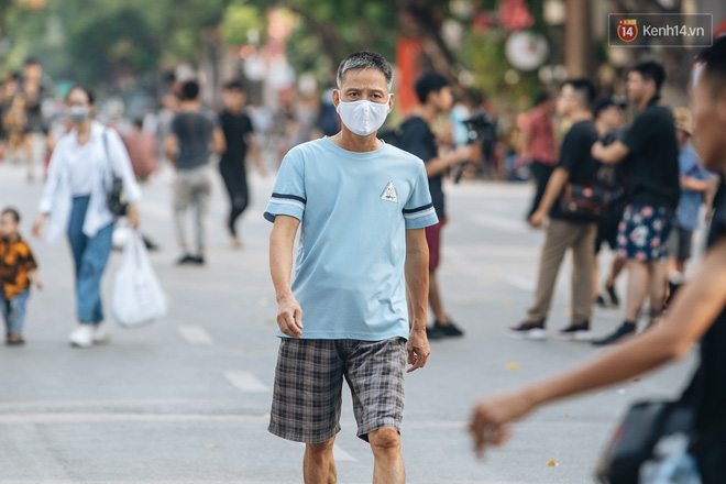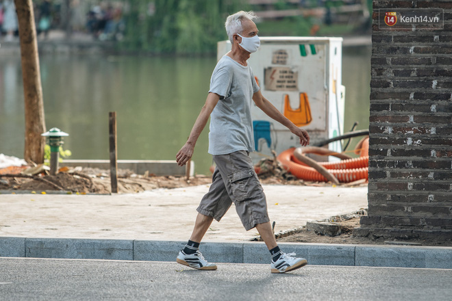 Phố đi bộ hồ Gươm chiều 25/7 khá vắng vẻ do thời tiết nắng nóng kéo dài. Theo ghi nhận, đa số người dân đều chấp hành việc đeo khẩu trang, nhất là đối với trẻ nhỏ và người lớn tuổi.
