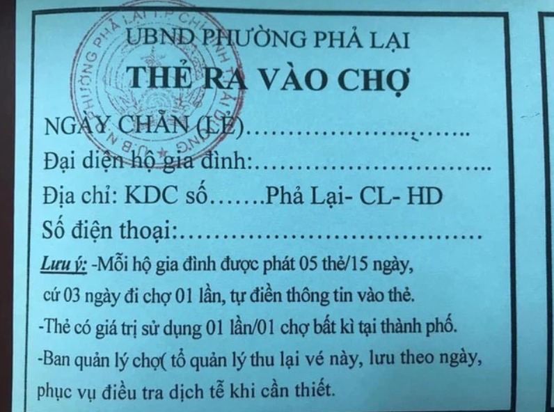Mỗi hộ gia đình sẽ được phát phiếu ra vào chợ để mua lương thực, thực phẩm cần thiết. Nếu dùng hết tem phiếu sẽ không thể vào chợ. Tem phiếu sẽ được phát tại các khu dân cư.