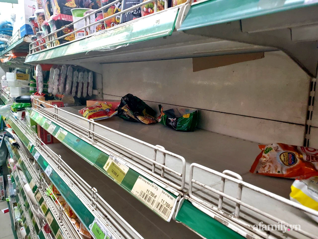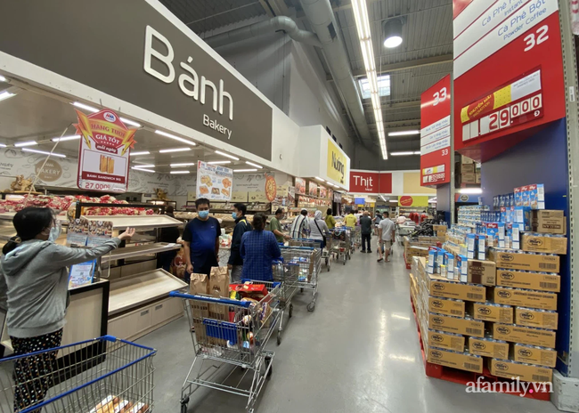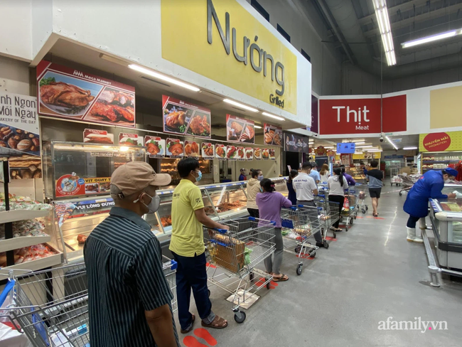 Nhiều sạp hàng nhu yếu phẩm chủ chốt như thịt cá, rau củ quả, gạo bị gom sạch, kéo theo việc các siêu thị phải vất vả hơn trong việc phân phối hàng hóa và giữ an toàn phòng chống dịch.