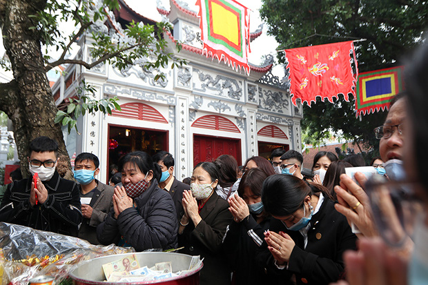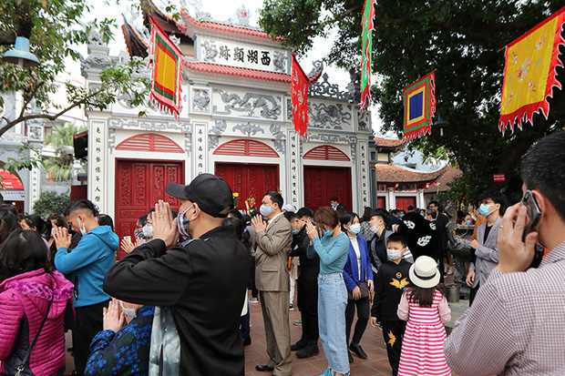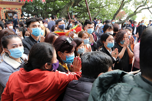 Do thời tiết năm nay nắng ráo nên người dân đi lễ đầu xuân rất đông. Từ cổng vào, Ban quản lý di tích đã đặt các biển báo khuyến cáo người dân thực hiện nghiêm túc công tác phòng, chống dịch COVID-19 như đeo khẩu trang, giữ khoảng cách và rửa tay sát khuẩn…