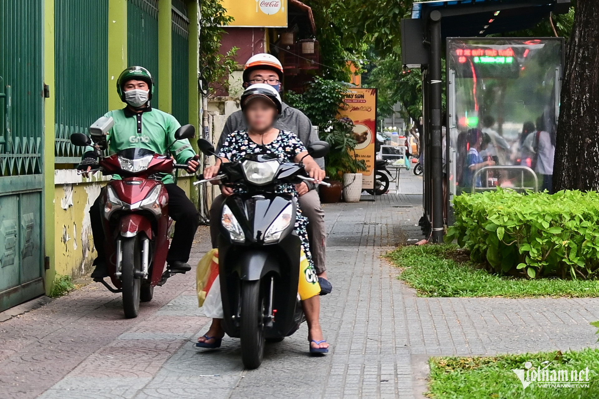 Cảnh đi xe máy lên vỉa hè vẫn xuất hiện ở các khu vực không có chốt CSGT. Hình ảnh trên đường Phan Văn Trị (quận Bình Thạnh).
