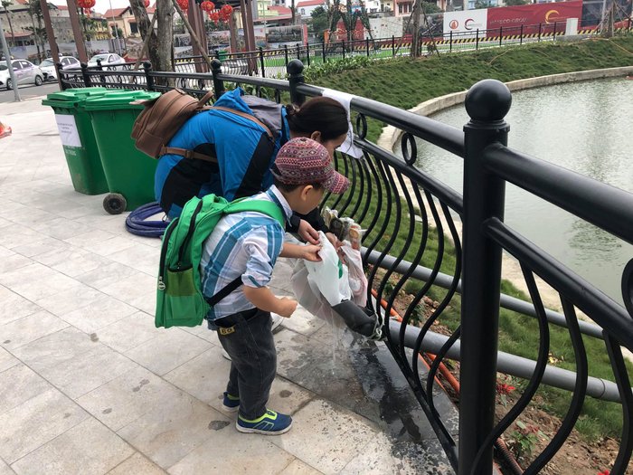 Người dân ở một khu chung cư tại Hà Nội đã sáng tạo “hệ thống” đường ống nhựa như “cầu trượt” để mọi người thả cá chép xuống hồ.
