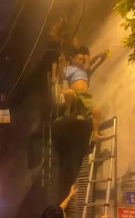 "Ngẩng đầu lên, tôi thấy trên tầng 2 có người giơ tay ra cầu cứu, tôi bảo Long (con trai chủ trọ nơi anh Luật ở - PV) tìm giúp tôi thang và búa để phá tường cứu họ. Tôi cũng chạy ra đầu ngõ tìm mà không có, lúc quay lại thì bạn ấy đã tìm được rồi. Có thêm 2 bạn cùng hỗ trợ, một bạn giữ thang, một bạn trèo lên đập.