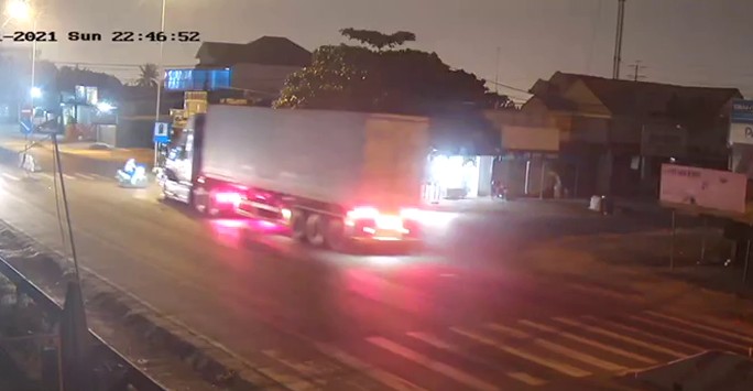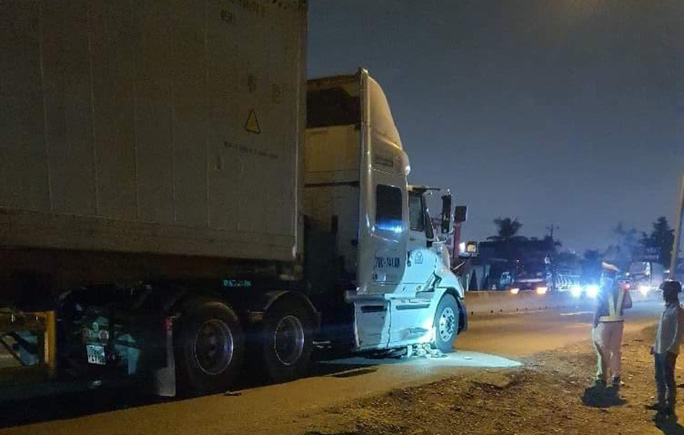 Khi xe máy vừa sang phần đường đối diện thì cũng là lúc này xe đầu kéo BKS 79C-141.08 chở theo container lưu thông hướng ngược lại. Do xe máy chuyển hướng qua đường đột ngột nên dù đã phanh gấp nhưng xe đầu kéo vẫn cán qua xe máy, kéo lê đi một đoạn mới dừng lại.