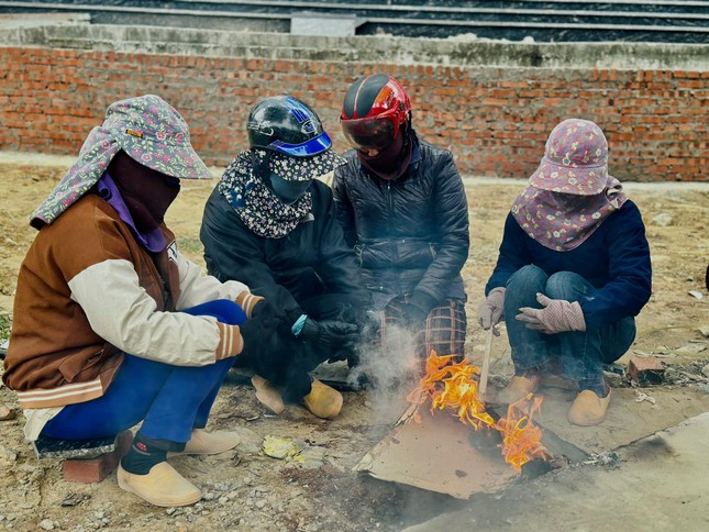 Những ngày trời chuyển lạnh buốt , bà Hoa cùng nhóm chị em lao động trong nghề cùng đốt lửa sưởi ấm. Hơi lửa tỏa ra nóng, nhưng lòng họ cũng như “lửa đốt” vì chờ từ sáng vẫn chưa có người thuê mướn gì. Theo những người lao động ở đây, cuối năm họ ít việc hơn ngày thường. Dịp này chủ yếu nhận những chuyến hàng nhờ chở hoa thuê, dọn dẹp nhà cửa, còn phụ hồ thì từ 15 Âm lịch đến qua Tết sẽ ít việc hơn.
