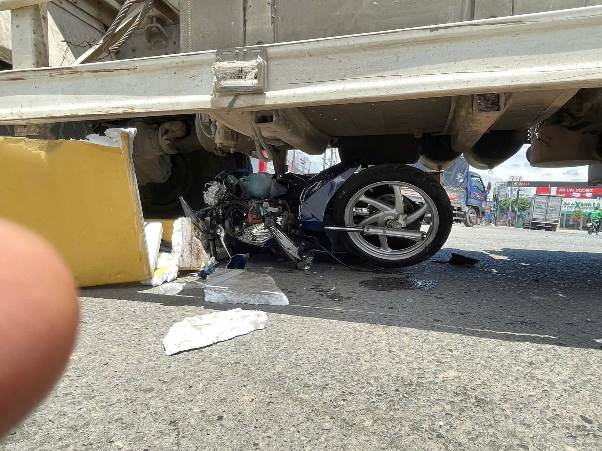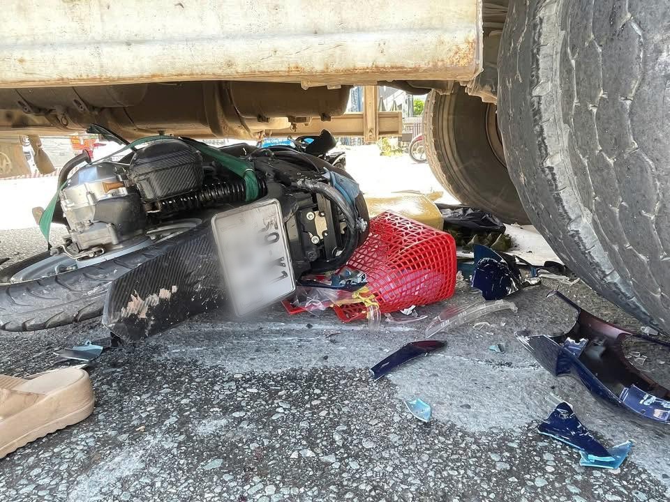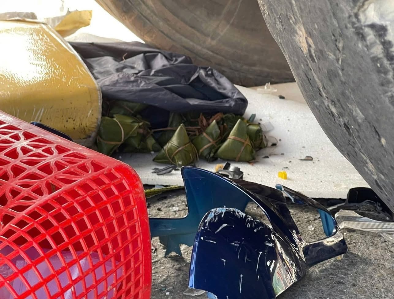 Đúng lúc này, xe bồn đã va chạm mạnh với xe máy biển số 59K1-139xx do chị Lê Thị D. điều khiển. Cú va chạm kinh hoàng khiến cả xe máy và chị D. bị cuốn vào gầm xe bồn. Tại hiện trường, chiếc xe máy hư hỏng nặng, nằm gọn trong gầm xe, nhiều mảnh vỡ phương tiện và những chiếc bánh chị D. chưa kịp giao cho khách rơi vương vãi khắp nơi.
