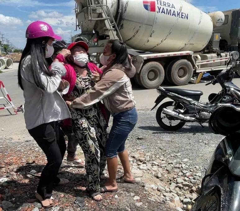 Tại hiện trường vụ tai nạn, người thân của chị D. đã không thể kìm nén được nỗi đau, ngã quỵ và bật khóc nức nở khi nghe tin dữ.