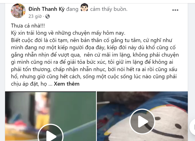 Trong khi đó, trên trang cá nhân, ông Đinh Thanh Kỳ đã công khai đăng tải bài viết khá dài "trải lòng" về câu chuyện của gia đình mình.