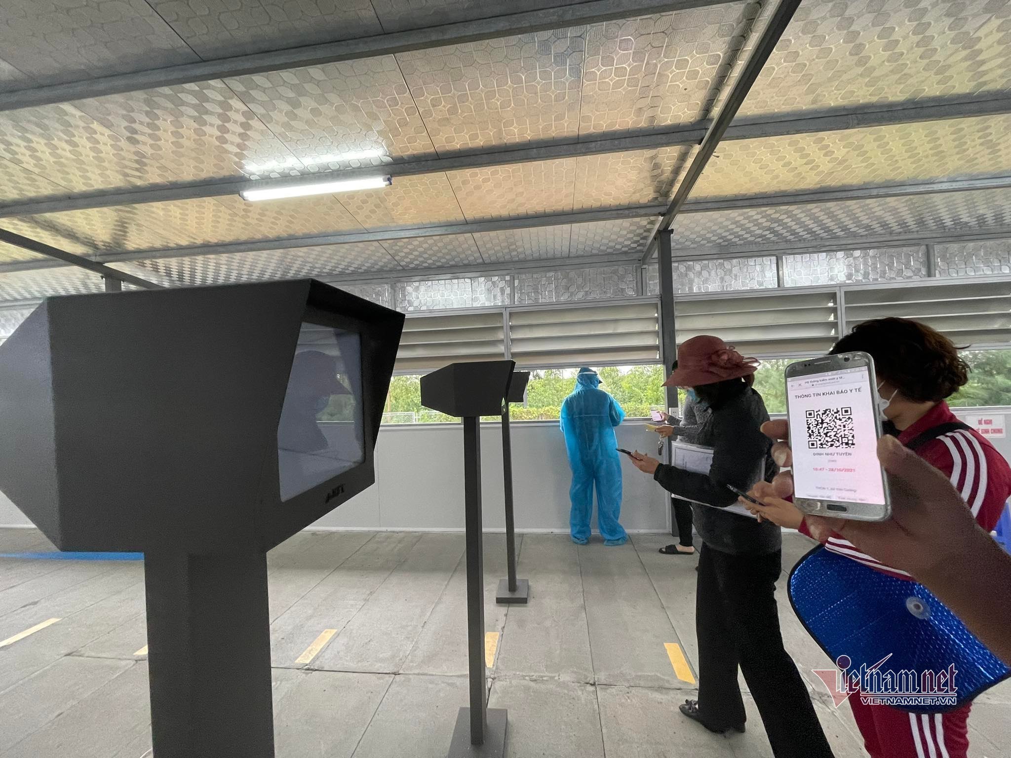 Hiện tại, người dân chỉ cần tới khu vực nhà chờ rồi quét mã QR, lực lượng chức năng kiểm tra lịch trình trên ứng dụng PC-Covid nếu đủ tiêu chuẩn sẽ cho đi qua, không cần phải đóng dấu xác nhận vào tay.