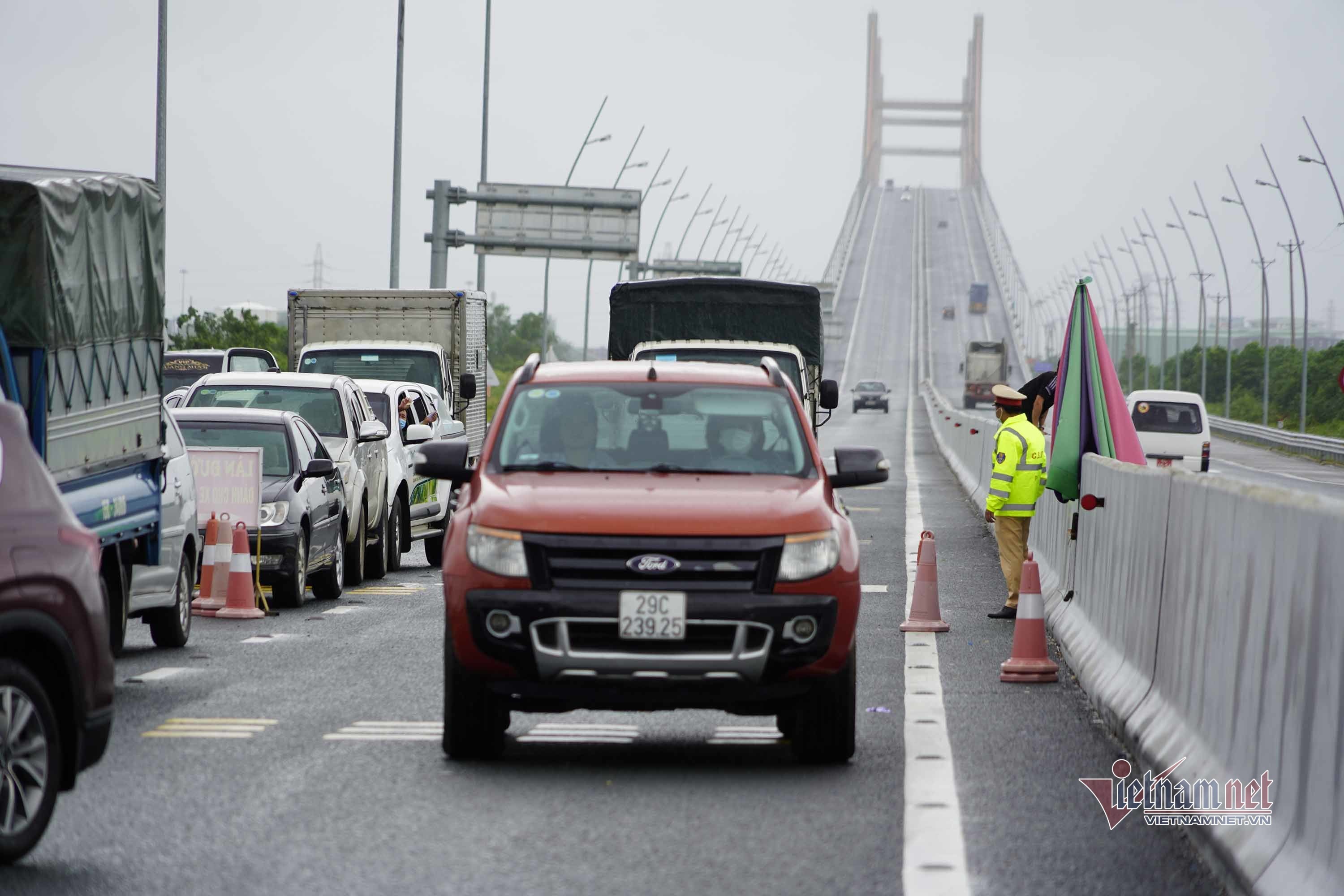 "Chúng tôi vẫn cắt cử lực lượng kiểm tra lịch trình di chuyển của người dân để xem trong vòng 14 ngày gần nhất có di chuyển đến "vùng cam, vùng đỏ" không. Thực tế, có người dù ở "vùng vàng" nhưng trước đó có ở khu vực "vùng đỏ" hoặc "vùng cam" thì phải yêu cầu cách ly nếu đi vào tỉnh", đại diện chốt kiểm soát cầu Bạch Đằng nói.