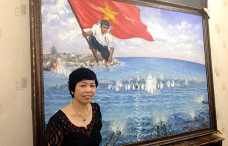 Bà Nguyễn Thị Kim Dung bay từ Nghệ An vào TP HCM xem tranh và ra giá cao để sở hữu họa phẩm tri ân chiến sĩ hải quân hy sinh vì biển đảo quê hương.