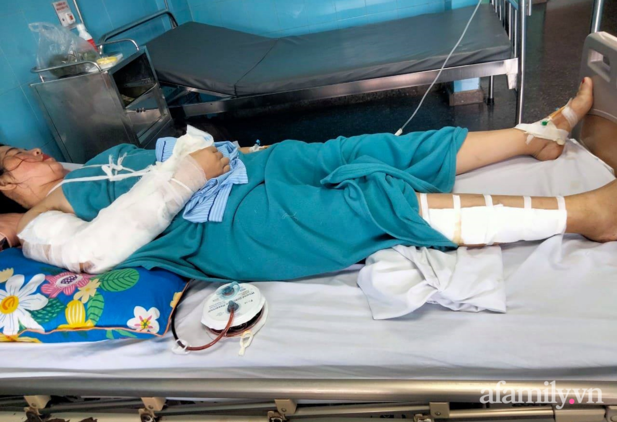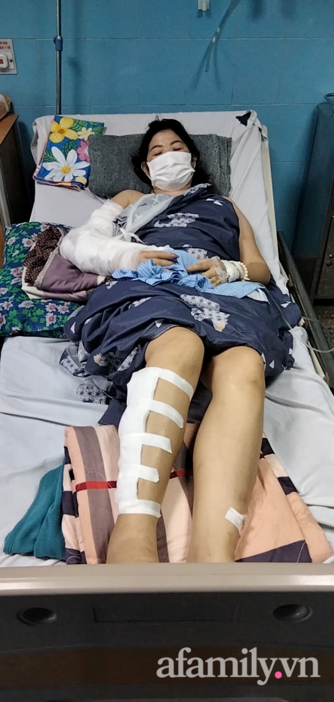 Chị Ngân nhanh chóng được đưa đến bệnh viện phẫu thuật nối lại cánh tay bị đứt lìa, khâu những vết thương hở. Riêng vết thương ở đầu đang theo dõi xem có ảnh hưởng đến não hay không.