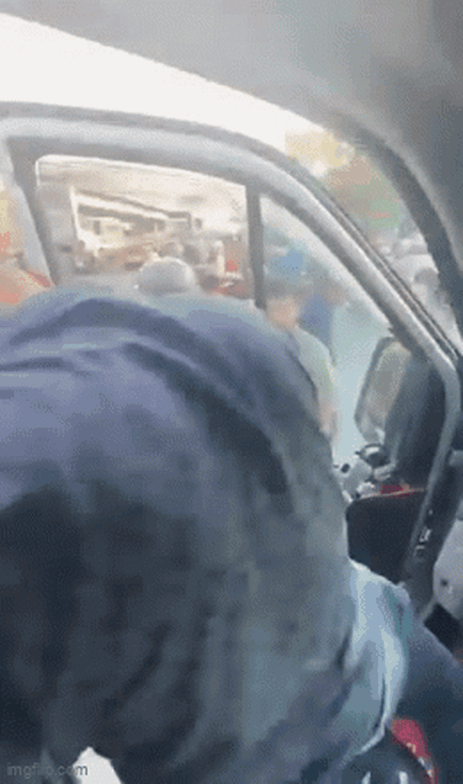Một số người dân đi đường chứng kiến vụ việc liền chạy tới can ngăn. Tài xế hoảng loạn, cầu cứu: "Anh kêu công an giúp em đi anh. Họ tông xe em rồi đập xe em vậy nè. Cái chị đó đó". Vừa nói tài xế chỉ tay vào người phụ nữ.