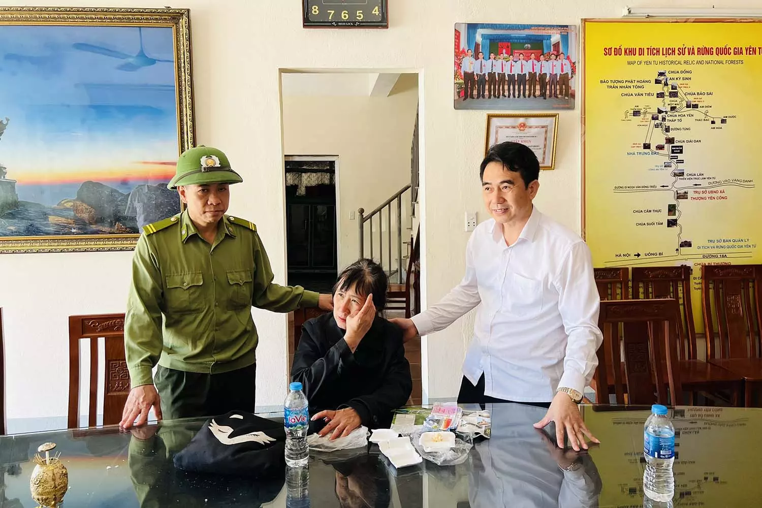 "Bà Liên đi Yên Tử một mình. Thời điểm bị ngã là do bà đang leo lên đỉnh thì có biểu hiện tụt huyết áp, khi ngồi xuống thì bị ngã xuống vực, rất may phía dưới có cây đỡ nên bà Liên không bị chấn thương nặng. Hiện tại sức khoẻ của bà Liên đã ổn định", ông Dũng cho biết.