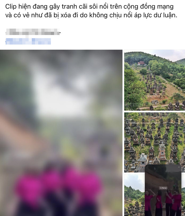 Một tài khoản Facebook viết: "Đây là nơi yên nghỉ của hơn 1.000 vị cao tăng từng tu tại chùa Bổ Đà, là một trong những nơi cổ kính, linh thiêng bậc nhất của miền Kinh Bắc. Vậy mà lại bị xâm phạm bởi 4 nữ nhân áo hồng nhảy nhót, uốn éo trên nền nhạc remix, trông thật phản cảm”.