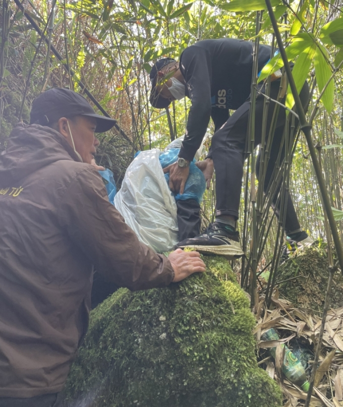 Ông Dũng cho biết, rất may, khu vực bà Liên ngã xuống có bụi dương xỉ, cây thân mềm đỡ lại. Lúc bị ngã xuống vực, bà Liên có mang theo trong người gói cơm cháy ăn dở và nửa chai nước. Đến hôm nay, sau 1 tuần, gói cơm cháy trong người bà Liên còn một miếng bằng ngón tay.