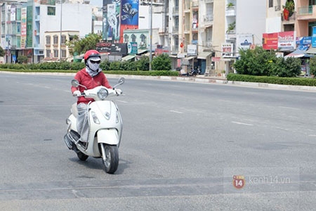 Dọc các tuyến đường tại TP. HCM trong những ngày qua, các phương tiện tham gia giao thông đã dần thưa thớt hơn vào thời điểm gần trưa vì thời tiết quá nắng nóng. Để giải nhiệt với cái nắng gần 40 độ C, mỗi khi ra đường, người dân phải trang bị đầy đủ áo dài tay, khẩu trang, kính mát và một số vật dụng khác... để tránh nắng. Khi có việc ra đường, người dân đều phải tranh thủ đi nhanh để trốn cái nắng quá gay gắt.