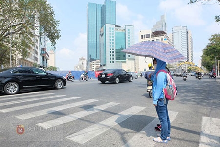 Người đi bộ luôn phải bịt kín mặt và cầm ô để che nắng. |