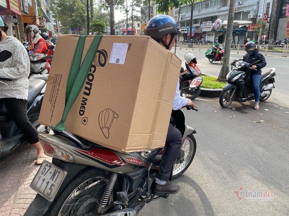 Anh Trần Minh Quân (ngụ quận 2) cho biết, do đợt dịch trước, tìm mua khẩu trang khó và giá cả rất đắt nên lần này tôi quyết tâm mua luôn một thùng để về sử dụng.