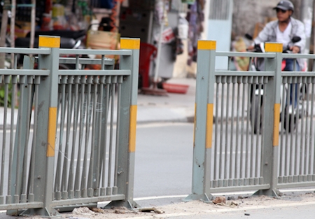 Hầu hết các đoạn chắn bằng sắt cao khoảng 1,5 m sau khi bị tháo đều được bỏ sát bên cạnh. Nhiều thanh sắt được cột cố định vào khung kế bên. Đa số các điểm bị tháo dỡ đều nằm trước những con hẻm hoặc những địa điểm kinh doanh nhà hàng, quán ăn hoặc mua bán sầm uất.